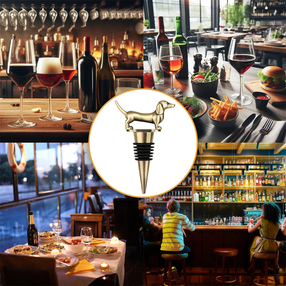 Introducing the Dachshund Dog Wine Bottle Stopper. Made of sturdy metal, this stopper keeps your wine fresh and flavorful. Its unique design features a playful dachshund for a touch of canine charm. A must-have for any dog lover and wine enthusiast.